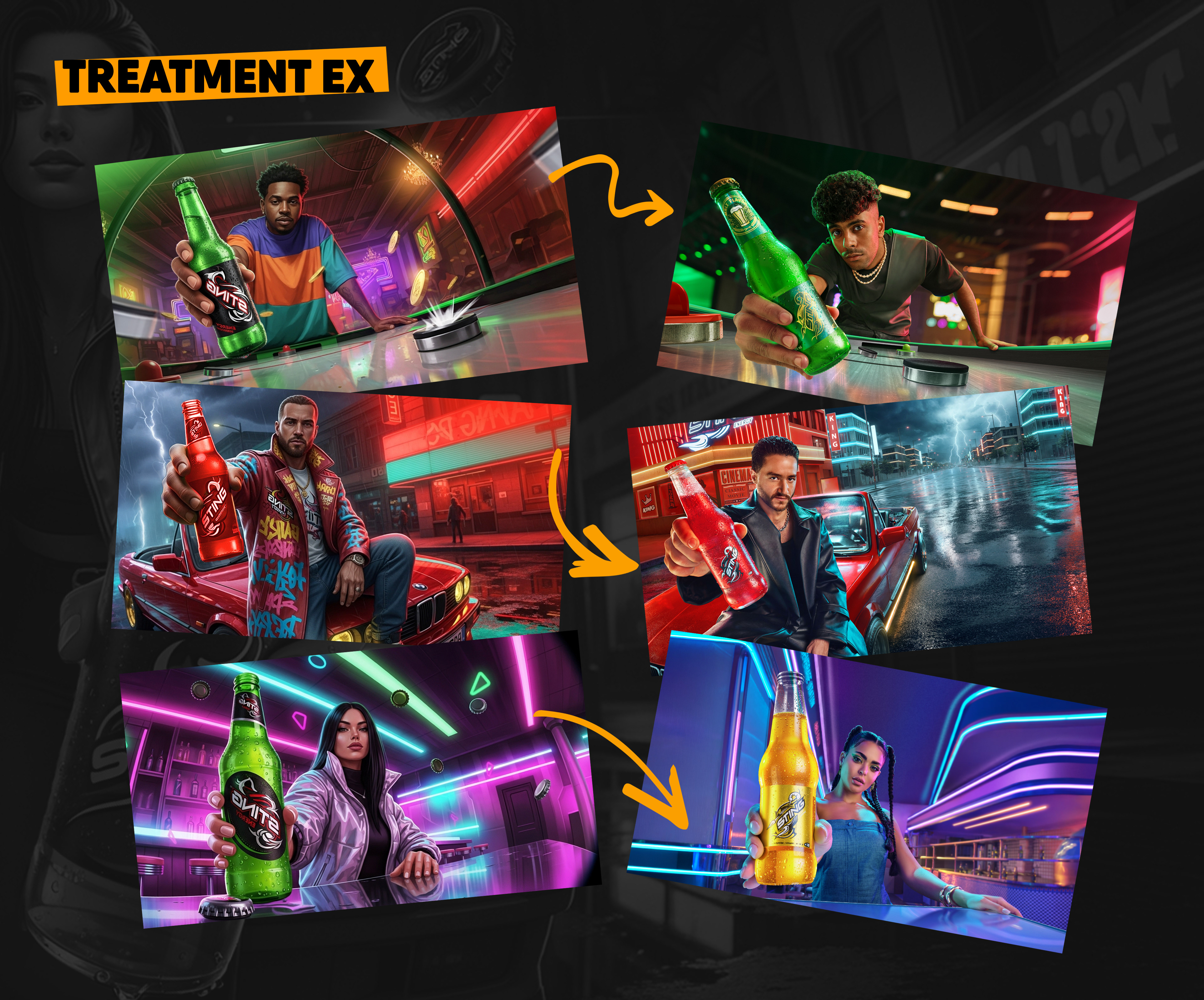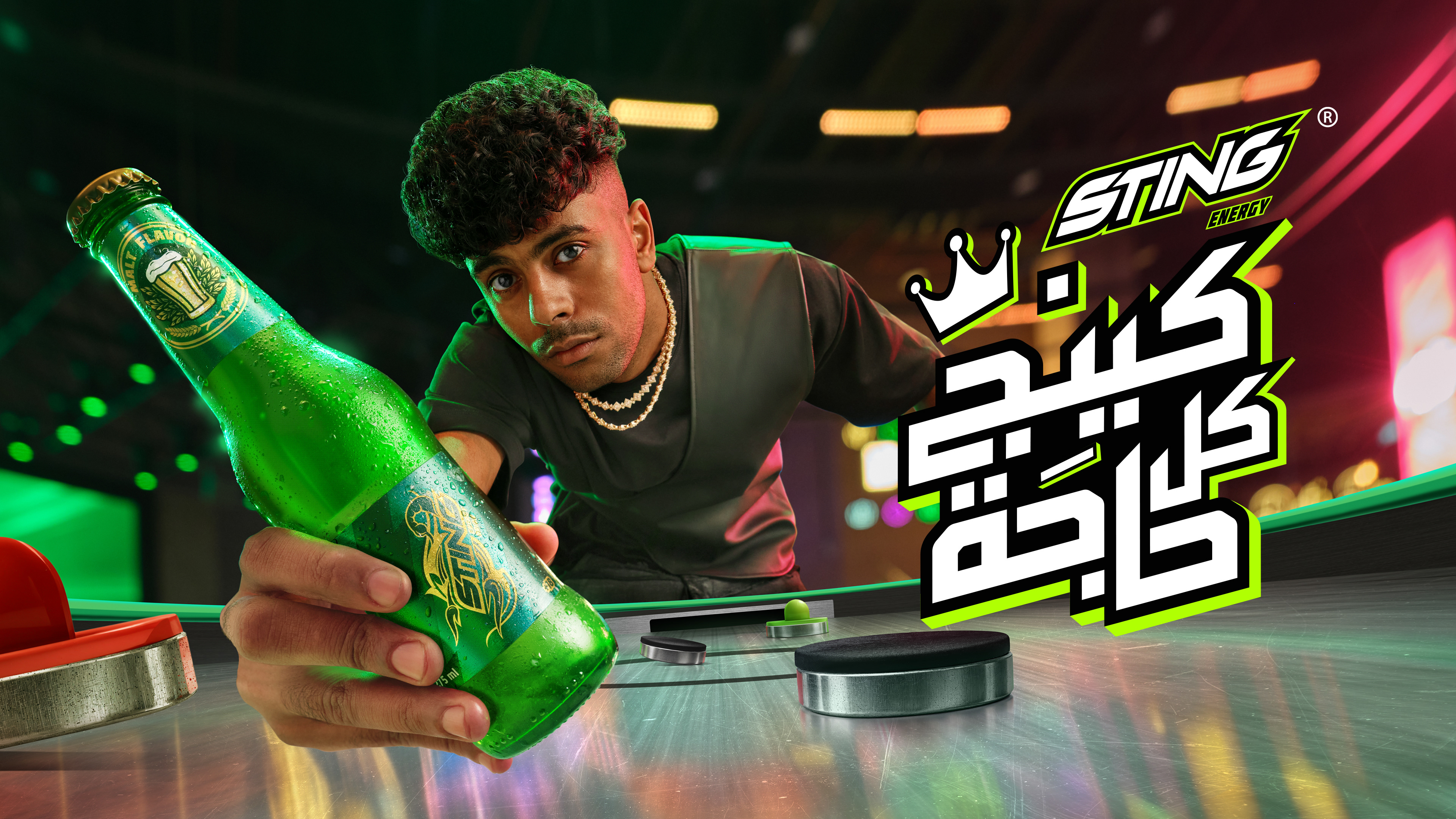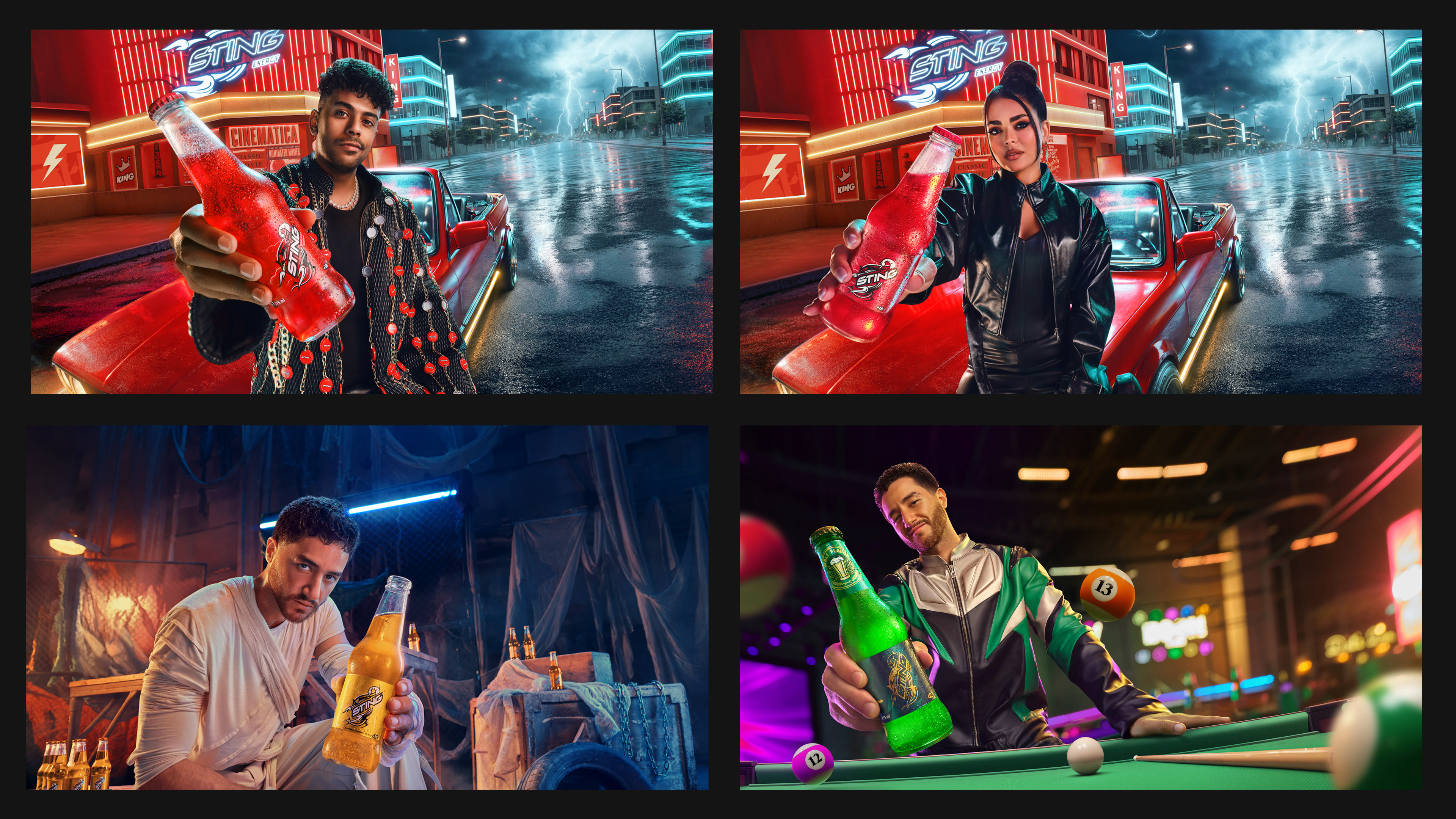This summer, Sting launched a bold campaign urging youth to unleash their power, break laziness, and take charge — to be the King of Everything… every game, every move, every moment. “كينج كل حاجة” became a statement of dominance and energy, inspiring young people to stay sharp and active. The campaign featured Egypt’s top talents — Ahmed Malek, Asmaa Galal, and Afroto, each representing a unique energy and charisma connecting with today’s youth. Art direction followed the director’s treatment: vibrant neon colors, distortion lenses, and high-energy compositions that reflect the brand’s pulse. I began with sketches and a treatment to communicate the vision and guide the team through photography and set directions. Thanks to Omar Ehab’s photography, the shots came alive with dynamic angles and expressive lens work that amplified the energy in every frame. In post, we stayed true to the treatment — and we did it. The final visuals delivered the intensity, color, and power Sting stands